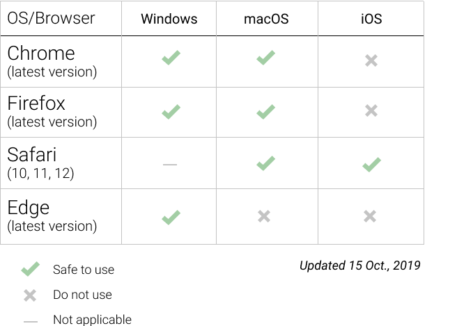 Please consult the chart below to identify which browsers and operating systems are compatible with the test and associated lock down browser software.